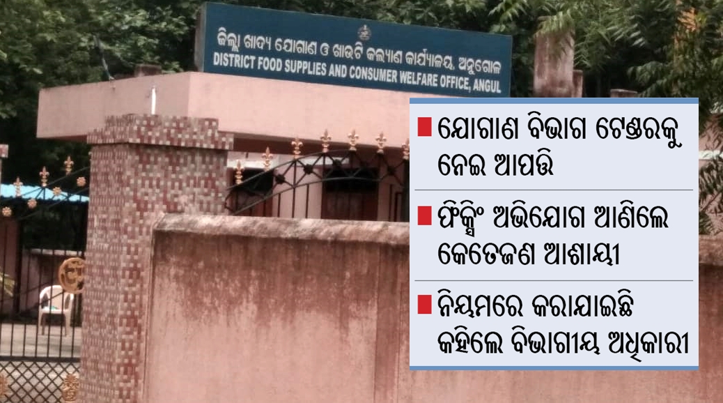 ଅନୁଗୋଳ ଅଫିସ,୨୮ା୬: ଅନୁଗୋଳ ଜିଲାର ୮ଟି ବ୍ଲକରେ ଥିବା ଡିଲରମାନଙ୍କ ନିକଟରେ ସାଧାରଣ ବଣ୍ଟନ ବ୍ୟବସ୍ଥା (ପିଡିଏସ୍)ରେ ଚାଉଳ ଓ ଗହମ ପହଞ୍ଚାଇବାକୁ ଜିଲା ଯୋଗାଣ ବିଭାଗ ପକ୍ଷରୁ ଠିକାଦାର (ଏଲ୍-୨ କଣ୍ଟ୍ରାକ୍ଟର) ନିଯୁକ୍ତି ନିମନ୍ତେ ହୋଇଥିବା ଟେଣ୍ଡରକୁ ନେଇ...
